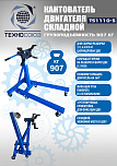 Оснащен редуктором для легкого вращения одной рукой. Редуктор позволяет поворачивать вывешенный двигатель под углом 360°. Надежная сварная конструкция и 4 поворотных колеса обеспечивают маневренность и устойчивость к перевороту. В комплекте поддон для сбора отработанного масла. С 4-мя регулируемыми кронштейнами для удобства вывешивания и обслуживания ДВС легковых и легких грузовиков. Для сборки/разборки моторов V6 и V8. г/п: 500 кг.