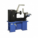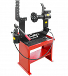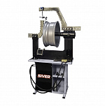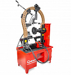 Для правки сложных ремонтов всех видов, в том числе «восьмерок», спиц (от 22-х дюймов, ремонт с мобильным кронштейном). Рама допускает нагрузку до 12 тонн. Вал из стали особой прочности. Станок оснащен специальными болтами, усиленной планшайбой и электроприводом вращения вала, который облегчает зоны правки и качество работ. Конструкция гидроцилиндра фиксирует его в любом положении так, что правка производится одной рукой, без удержания гидроцилиндра на весу.