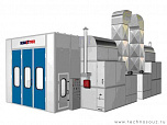 Данная зона подготовки имеет боковой забор воздуха и обладает функцией притока, вытяжки и рециркуляции воздушных масс. Также имеется функция поддержания заданной температуры окраски – до 25 град.