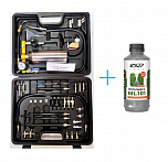 Комплект GX-100 стенд для форсунок инжектора промывочный. Переходники в комплекте – 35 шт. Для любых жидкостей. Для форсунок любого бензинового двигателя. Регулировка давления подачи жидкости. В пластиковом кейсе. У данного стенда все шланги и переходники оснащены тефлоновыми манжетами, а не обычными резиновыми, как у аналогичных стендов, представленных на рынке, что позволяет избежать подтеканий при дальнейшей промывки двигателя + Жидкость (очиститель) LAVR ML-101 Профессиональный состав для полной очистки систем впрыска бензиновых двигателей любой степени загрязнения. Гарантированно удаляет 100% загрязнений в форсунках.