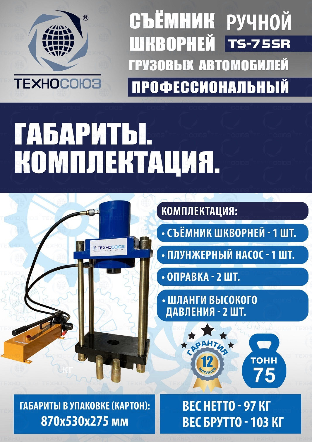 Преимущества выпрессовщика шкворней TS-75SR: